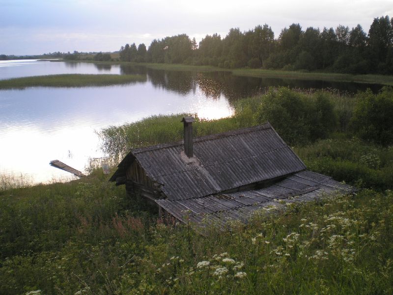 Дале пешком возвращаюсь в Кириллов. Прохожу переправу у канала, трапезничаю у магазинчика. Длинная прямая дорога, мимо автостанции, заканчивается у Кирилло-Белозерского монастыря. Начинаю его осмотр. Громаднейшая территория. Монастырь как бв в два "яруса". Самый внутренний – тот и есть сам монастырь. В храме мощи прп Кирилла Бело-зерского. Канун Рождества Иоанна Предтечи. Заявляю о себе в храме. Меня ведут к настояте-лю, тот благословляет в "странноприимный дом" – местная паломническая. Паломническая весьма убогая, на две половины – мужскую и женскую. Вода из умывальничков, нужно но-сить… Определяю вещи, заряжаю телефоны, просушиваюсь. Стоим Всенощное бдение Рожде-ства Иоанна Предтечи, затем трапеза. В паломнической выдержка из "Апостола" – принимать до 3-х дней во Славу Божию, а затем по трудовому послушанию. Из братии запоминается рБ Александр, который тут проживает для прохождения процедур в местной больнице. У него т.н. трофическая язва на ноге, он сильно страдает. После вечернего правила пробую его "лечить" по четкам – 150 "Отче Наш"… 7.07. Вторник. Утро – Литургия и причастие. Всей братии монастыря аж три монаха во главе с игуменом Игнатием…Да и один послушник, бойкий мальчик Антоний… После литур-гии трапезничаю и выдвигаюсь в район Вологды. Планирую встать в Новленском и прояснить пути переправы на противоположный берег Кубенского озера через Спас Каменный, либо про-сто поснимать и двигаться через Вологду на Устье… Фото Кирило- Белозерского и так хорошо известны, так что их не выкладываю В Новленском примерно в 13.30. Ищу лодку вдоль речки Ельма. Из разговора с моло-дежью, выясняю, что в селе прошла бурная ночь "накануне Ивана Купала" и все спят. Телефон-ные звонки знакомым ничего не дают. Мне советуют пройти в село Коробово в 3 км, это прямо на берегу Кубенского озера, может там что-то выйдет. Расспросы в Коробово безрезультатны. В одном месте строится сруб дома, спрашиваю мужиков, кто бы проехал на Спас Каменный. Все шутят, а один человек вызывается. Звать Сергеем, примерно лет 40-45. Сам он из Вологды, уроженец Коробово, сейчас у него участок в селе, обнесен каменной стеной, кулисные двери открывают въезд на территорию. Иномарка-джип. Приглашен на обед, после едем за бензином, заряжаем 50 л. плюс масло. С меня 1300 руб. Вот все и готово. Сергей жалуется , что ночью кто-то увел его лодку, еле нашел… Последствия сельской гулянки. С собой Сергей берет жену Ольгу, дает куртку, что очень кстати, скорость приличная да и ветер свеж. Пересекаем Кубенское озеро, Спас Каменный красиво вырисовывается из вод… На острове встречает нас злой пес, все время лает и пытается броситься. Жилое строе-ние одно – там музей обители, найденные там раритеты, крест с колокольни, остатки колоко-лов, иконы… Восстанавливается колокольня, на ней слабо копошатся трое рабочих. Действует часовня. Мощи прп Василия Спасо Кубенского погребены под руинами взорванного Спасо-Преображенского Собора… Один из рабочих спускается к нам, показывает музей, отгоняет пса, который уже успел порвать мне зубами сумку. Он жалуется, что в этом году вовсе нет финан-сирования, работы стали, так что и туго даже с продуктами. Ездить приходится далеко за 8 км в Устье… Отправляемся дале на Устье. Входим в устье реки Кубины, на правом берегу крупный поселок Устье, а напротив село Чирково с красивым погос