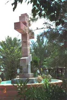 Фонтаны и питьевые фонтанчики выполнены в "стиле Калифорнии" - это что-то вроде раннего барокко. Живительная влага смягчает горячий пустынный воздух и предохраняет от обезвоживания. Воды в обители много и хватает на все. В каждой беседке-ротонде есть небольшой фонтан. Это одно из чудес монастыря в пустыне...