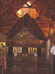 В греческих церквях нет такой пышной позолоты, как в российских храмах, нет фресок на стенах и потолке, столь привычных и милых нашему взору. Здесь все строже: афонские иконы на белых стенах, воздушное кружево деревянной резьбы царских врат и киотов.