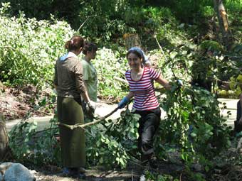 Бригады православных появились в монастыре сразу после того как в новостях передали информацию о стихийном бедствии. Положение сложилось действительно чрезвычайное - стихия разрушила систему водоснабжения обители и асфальтированную дорогу в Реабилитационный центр, помогающий пострадавшим детям Беслана и Цхинвала. В русле реки образовались заторы из поваленных водой деревьев. В монастырские озера сошел сель. Шлюзы оказались забиты илом и нанесенным мусором, из-за чего пришлось прокопать дамбы и спустить воду.