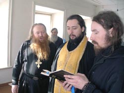 Братская трапеза завершается молитвами чина Панагии. Попросив прощения у братии, иеромонах Досифей разделяет большую просфору и вручает каждому по частице. После этого все расходятся по своим послушаниям, а мы следуем за отцом Тихоном. По дороге узнаем, что в монастыре трижды в неделю, начиная с пятницы, совершается Божественная литургия; в остальные дни служится молебен с акафистом Святителю Николаю. Братия целый год ночует в небольшой комнатке (так называемой палатке) при церкви. На первом этаже дома, где располагается трапезная, устроена иконописная мастерская. Там трудится художник, переехавший вместе с отцом Тихоном из Омутнинска.