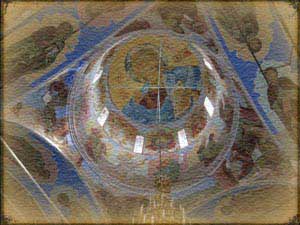 Троицкий собор. Построенный по велению Святой Троицы, он и сегодня не оставлен Благодатью Божьей: фрески в соборе, по сравнению с тем временем, когда монастырь только возобновился, стали как бы сами по себе обновляться, приобретать более яркий, небесный свет. Интересно, что это обновление движется сверху вниз. И если вначале внизу вообще ничего не было видно, все изображения были как бы смазаны - то потом они стали проявляться все ярче и ярче.