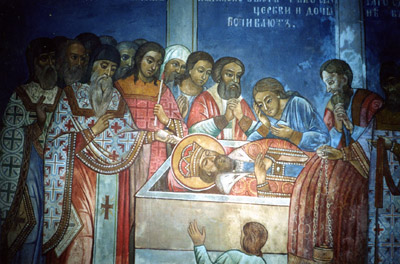 В ночь с 16 на 17 июля 1918 года, в подвале дома инженера Ипатьева, что на Вознесенской горке в Екатеринбурге было совершено изуверское убийство Помазаника Божия царя Николая II, царицы Александры Федоровны, царевен: Ольги, Татианы, Марии, Анастасии, наследника цесаревича Алексия и их приближенных. Тела членов Августейшей семьи и всех других были положены в грузовой автомобиль и увезены на глухой рудник в урочище Четырех Братьев и сброшены в старую шахту (Ганина Яма). Для сокрытия от мира совершившегося зла останки были извлечены их шахты, расчленены и при помощи серной кислоты и бензина сожжены на двух кострах. Анализ земли показывает в ней наличие человеческого жира.