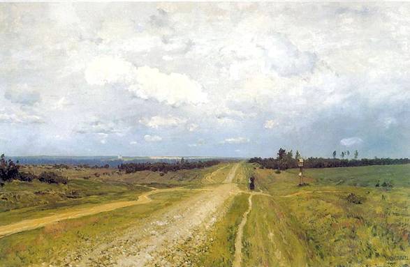 На другой же день Левитан с большим холстом был на этом месте, он сделал эскиз и несколько этюдов, а дописал картину уже дома в Москве. На картине нет арестантов, но они, кажется, готовы возникнуть на ней. Быть может, это их тоскующими глазами и увидена уходящая вдаль дорога.