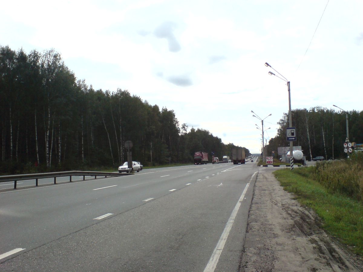 По обе стороны земляные валы около полуметра – это для пешеходов. Деревня Городок находилась чуть дальше, справа от шоссе, на берегу реки Пекши, но дома Левитана уже нет – он сгорел в 1999 году. Именно здесь в районе бензоколонки и трактира и можно посмотреть много интересного. Во-первых, если встать на АЗС и посмотреть по направлению из Москвы, то старая Владимирка хорошо видна.