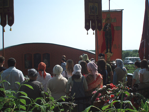 машинами и автобусами. Вокруг кладбища шёл крестный ход с хоругвями и иконами.