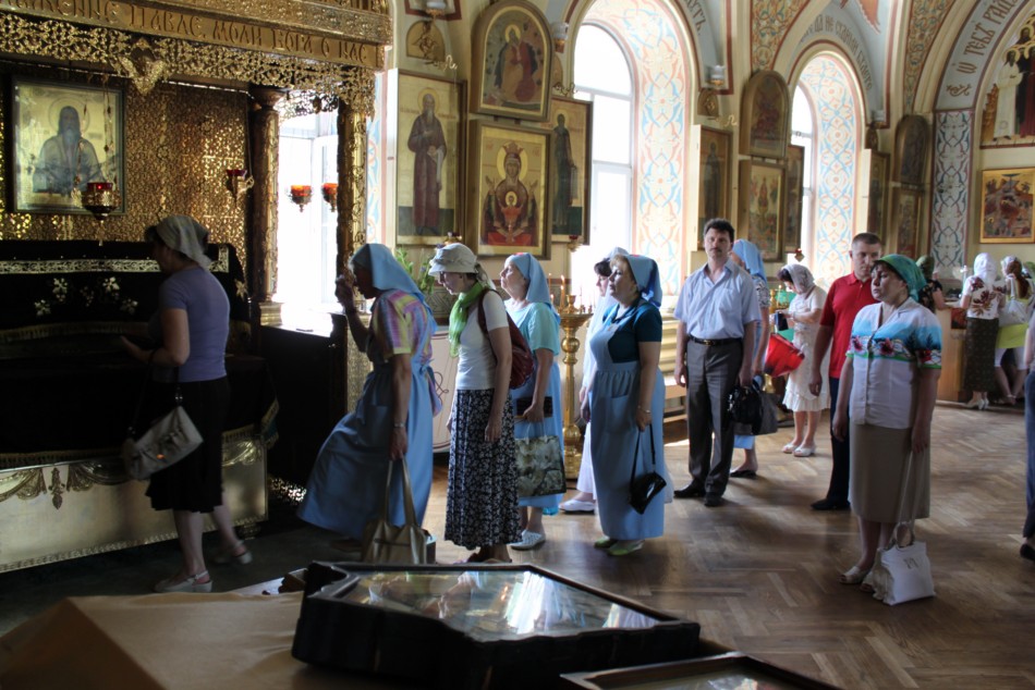 Так, в Никольском храме был отслужен краткий молебен и специально для ростовских паломников (то есть во внеурочное время!) была открыта рака с мощами св. блаж. Павла Таганрогского. Каждый мог преклонить свою голову к главе старца и попросить его молитв. Редкая возможность для тех, кто живёт не в Таганроге.