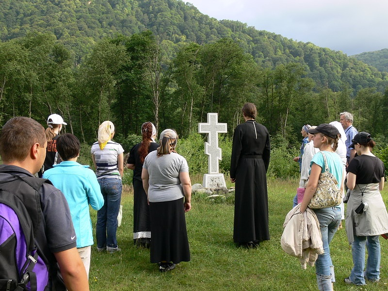 Приехав в поселок Нижний Архыз, мы оставили вещи на уютной базе отдыха, перекусили. И вот мы направились к главной цели нашего первого дня – к известному наскальному изображению лика Христа Спасителя. Недолгое восхождение по заботливо кем-то созданной импровизированной лестнице – и мы у цели. Сложно описать то разнообразие мыслей и чувств, которое охватывает тебя, когда ты стоишь перед Ликом. Подумать только – он был создан много веков назад, возможно одним из иноков, подвизавшимся в этих краях! Каких высот святости он достиг в своем подвиге, и какие плоды принес Господу! И кто знает, может совсем рядом в горах ютится небольшая келья какого-нибудь инока-отшельника, ушедшего из мира подальше от людей в горы, чтобы быть ближе к Богу… Мы же прочитали акафист Иисусу Сладчайшему, приложились к иконе. Затем отправились в наш лагерь. Этим вечером было свободное время. Несколько человек, например, включая и автора данной заметки, предприняли прогулку по окрестностям – хотелось увидеть больше прекрасных видов, запечатлеть их в своей памяти.