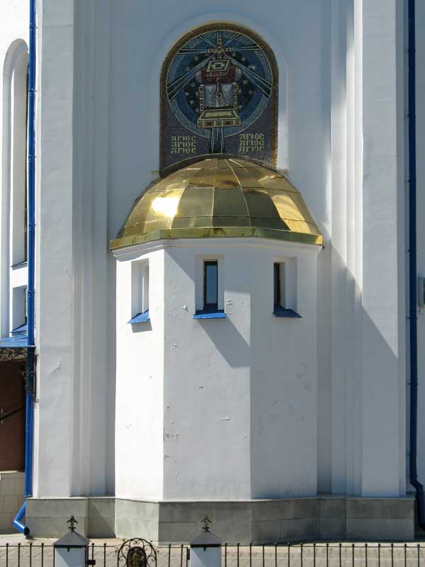 Храм свв. Константина и Елены. Южный фасад. Справа - забор паломниками освящённой воды.