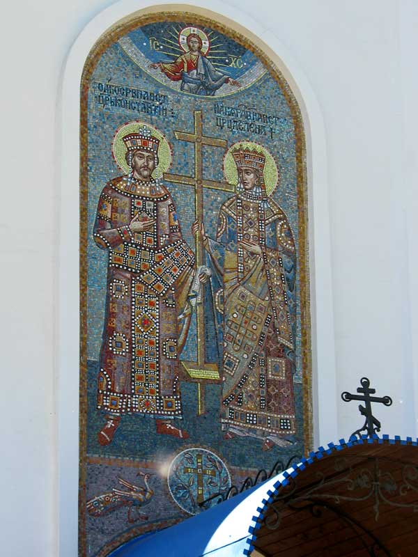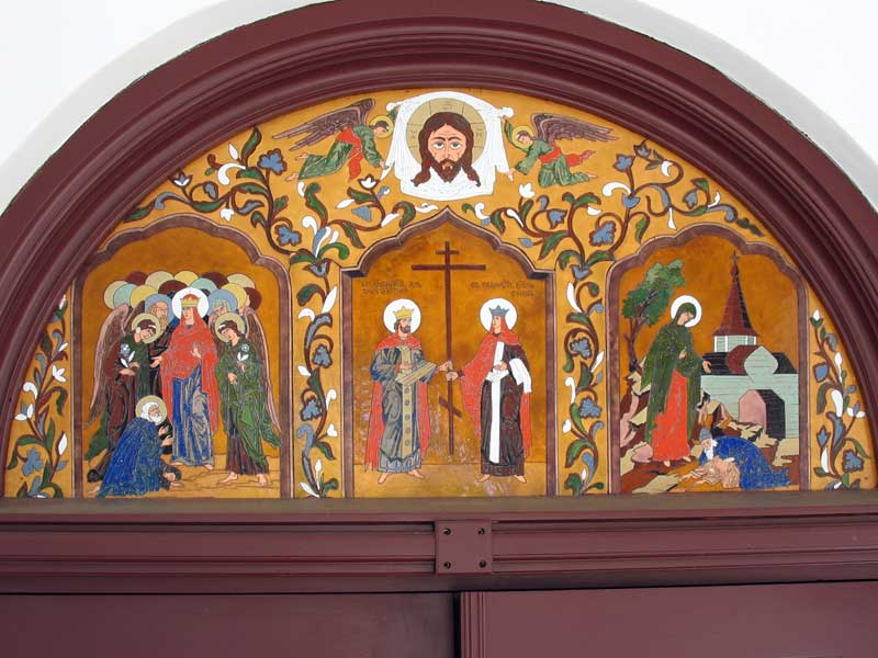Икона над главным входом. Святые Константин и Елена, воздвигающие Крест Христов.