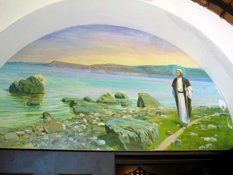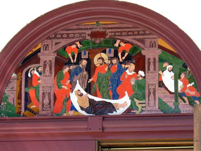 Икона, непосредственно над дверями с северной стороны: исцеление жены кровоточивой.