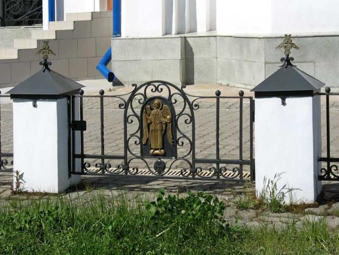 С восточной стороны храма отведено место для будущих погребений насельниц монастыря. Фрагмент ограды места для захоронений.