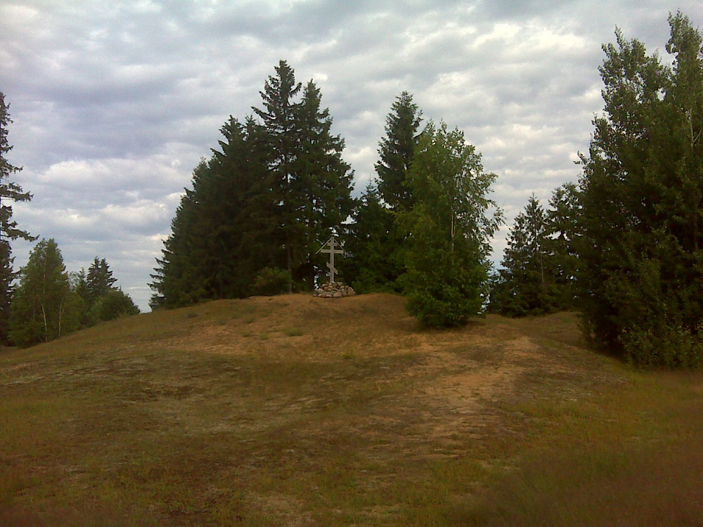 ходу. Координаты N 58.00.261, E 28.01.260. Постойте у креста. А теперь пойдём в заповедную