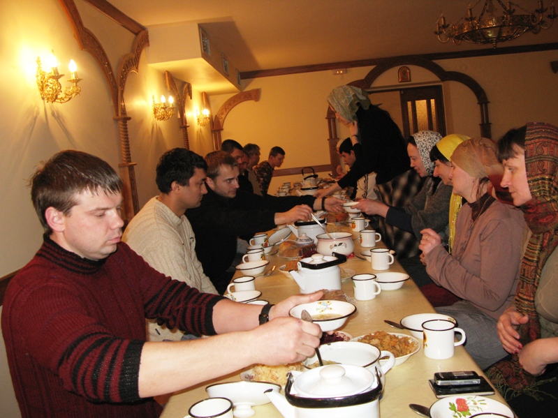 6 марта паломники посетили Кафедральный Благовещенский собор г. Воронежа, освящённый совсем недавно - в 2009 году. Милостью Божией паломники застали приезд Владыки Сергия - помолились за архиерейской службой, в храме приложились к святым мощам Митрофания Воронежского и свщмч. Петра Зверева. А на вечернее богослужение ребята отправились в Свято-Алексеево-Акатов женский монастырь. Здесь после экскурсии паломников расселили на ночлег. Братию расположили в мужском корпусе, а сестёр - в гостинице для паломников, которая находится на территории бывшего Храма прп. Сергия Радонежского. Засыпали девочки прямо под сводами храма, любуясь росписью удивительной красоты.