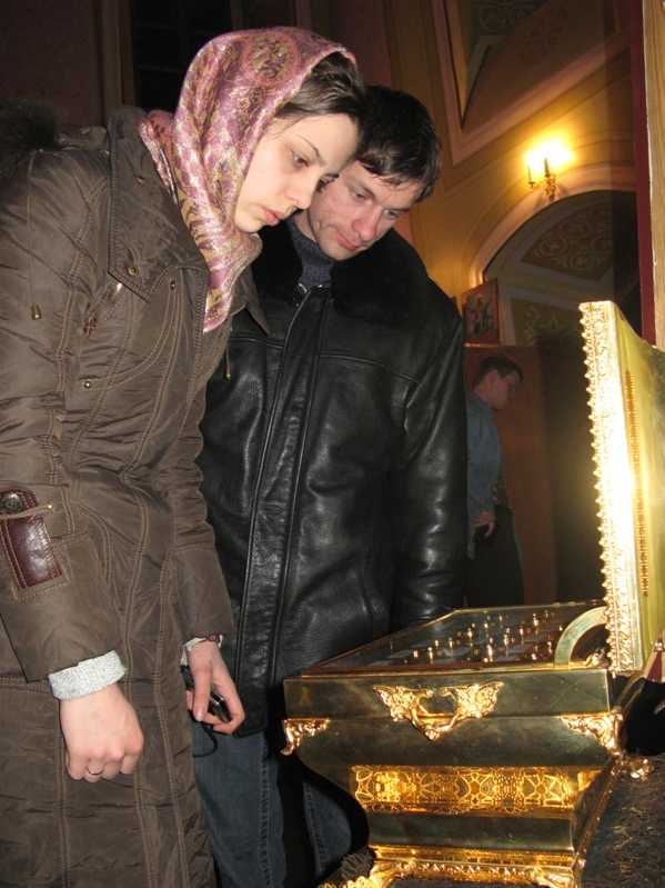 Утром 7 марта паломники направились в Рождество-Богородицкий мужской монастырь г. Задонска. Здесь Господь снова сподобил ребят побывать на архиерейской службе, теперь во главе с Владыкой Никоном. После трапезы и экскурсии паломники отправились на Святой источник Тихона Задонского. В этом благодатном месте ребята с благоговением в сердце и молитвой окунулись в святую воду. Те, кто не решился искупаться в 20-градусный мороз, просто умылись и набрали воды из Святого источника.