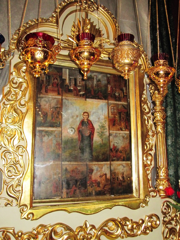 Желание помолиться перед иконой св. целит. Пантелеимона привело паломников в храм имени этого святого, расположенный в парке Островского. Там ребят тепло встретила одна из прихожанок, она провела экскурсию по храму, рассказала о его особенностях, показала некоторые чудотворные иконы, в том числе мироточащую икону св. Пантелеимона.