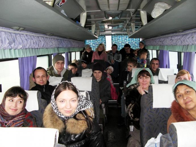 В пути паломники – сёстры милосердия, участники Молодёжного отдела Ростовской епархии, дети из Воскресной школы - первым делом взялись за чтение акафиста святому Павлу Таганрогскому, а затем выслушали интересный рассказ экскурсовода Анны Ивановны Болховитиной о Таганроге, вспомнили житие святого блаженного старца Павла.