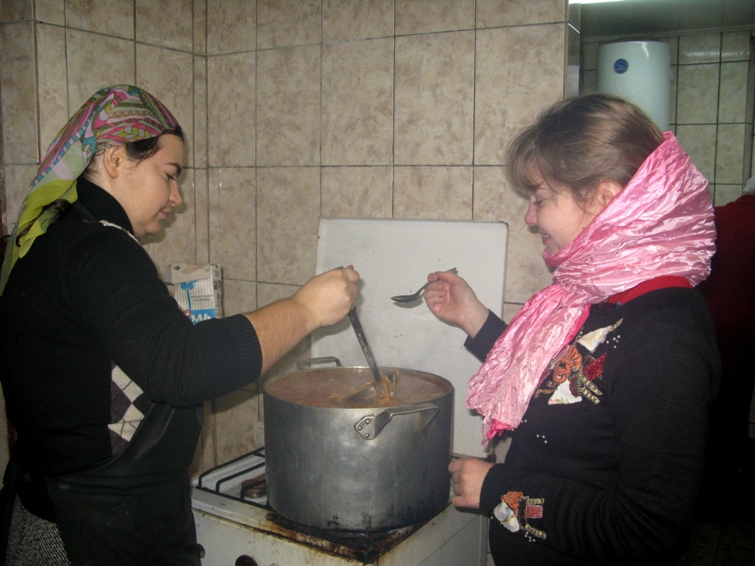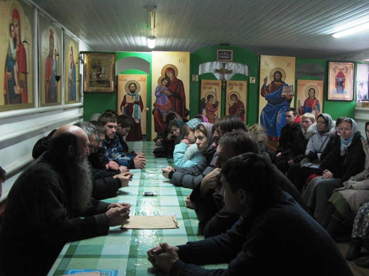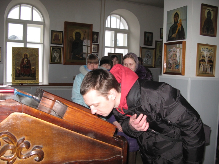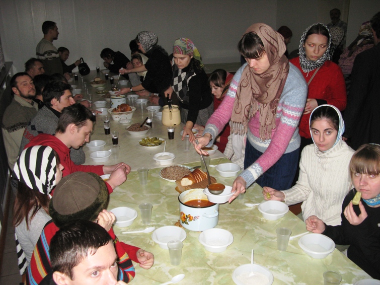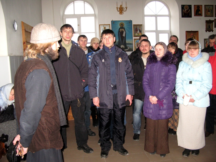 Низко поклонившись этим дивным святым местам и замечательным людям, ребята отправились домой. По пути паломники заехали в село Верхняя Макеевка, проведать братию Свято-Покровского скита Свято-Донского Старочеркасского мужского монастыря, ведь именно здесь проходили новогодние праздники участников М.О.Р.Е. в прошлом году. В этом месте ребята воочию увидели и ощутили на себе тяжесть аскетической жизни монаха. Каменный храм не прогревается, поэтому на службе изо рта идёт пар. Спать ребятам пришлось в конюшне, так как более удобных мест для ночлега едва ли хватило девочкам. Удалось здесь и немного потрудиться: девушки несли послушания в трапезной – готовили, мыли, чистили; а юноши – в храме.