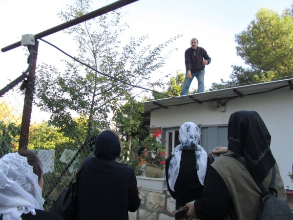 Когда мы вышли из мастерской, увидели на крыше небольшого домика в саду человека, который собирал мандарины с деревьев. Он, в свою очередь, заметил нас, и широко улыбаясь русским паломникам, бросил сверху мандарин, который тут же поймал кто-то из паломников. Все остальные также подняли руки за следующим мандарином. Человек оказался православным арабом, явно симпатизировавшим России, поскольку никто из нас не ушел от него без мандарина.