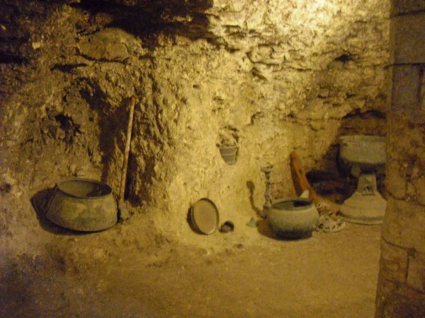 После такого ошеломляющего открытия, мы с пристальным вниманием стали осматривать эти камеры. Здесь были разложены камнетесные орудия, весели безмены для завеса материалов, лежали полуобработанные камни. Мы представляли немолодого архитектона Иосифа и его нареченного Сына Иисуса за обработкой камня. Невольно вспоминались и как-то заново осмыслялись многие строительные образы в поучениях и притчах Господних в Евангелии. Это и дом, построенный на камне или на песке. Это и камень, который отвергли строители и который становится главою угла, и наставление о том, что прежде, чем строить дом, необходимо рассчитать материалы. Здесь как-то иначе осмысляется и слово Христа: «Созижду Церковь мою», - как, впрочем, и сам образ Домостроительства Божия.