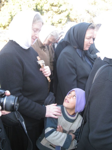 Козы по деловому стали тыкаться в паломников, намекая на угощение. Тронутые всей этой картиной наши паломницы стали доставать все, что было под рукой, детям и козам. Надо было видеть восторг даже от простой карамельки, который выражали эти дети аравийского народа.