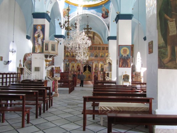 Я не заметил сам момент, когда мы въехали в город и вскоре оказались в самом центре города у главной его святыни. Это храм святителя Николая, на месте дома, в котором жил святой угодник. Храм святителя Николая поражает большими размерами, сразу видно, строили без оглядки на притеснения арабов и запреты турков. Действительно, выяснилось, что нынешний храм построен в 1920-е гг (освящен в 1931 г.) в период т.н. «английского мандата», когда англичане проводили политику христианизации Палестины. Встреча со святителем Николаем на Святой Земле необычная, потому что он в нашем восприятии менее всего ассоциируется с Палестиной, но тем более приятна, поскольку святитель Николай для нас особый, наш русский по духу святой.