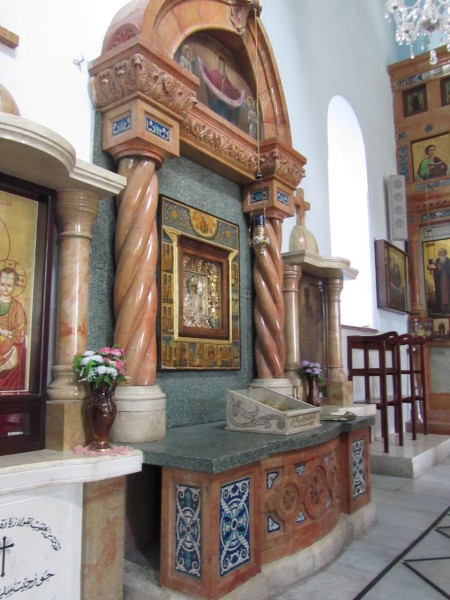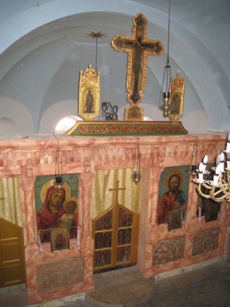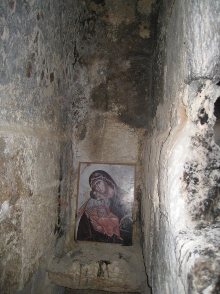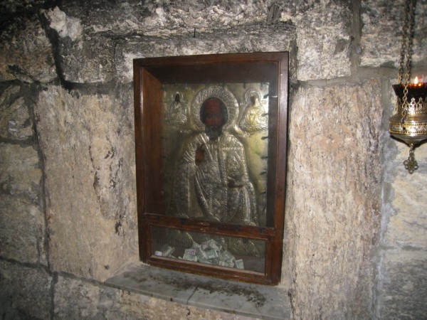 «Русский» святой нас и встретил по-русски, причем в буквальном смысле слова. В храме нам на встречу вышла матушка местного батюшки араба и заговорила с нами на чистом русском языке. Она сама оказалась русской. Мария, так ее зовут, училась на регентском отделении при Санкт-Петербургской семинарии, где познакомилась с семинаристом из Палестины арабом, если не ошибаюсь, Павлом. Они поженились, в 2004 году закончили учебу в городе на Неве и отправились служить на родину православного араба-батюшки в Бейт-Джалу. Теперь матушка Мария радушно принимает своих соотечественников на Святой Земле. После ее поселения в Бейт-Джале это место все больше стали посещать русские паломники. В самом деле, не везде на Святой Земле услышишь рассказ из первых уст на русском языке.
