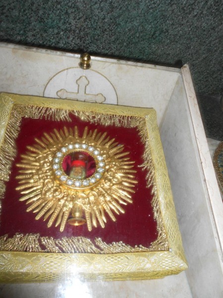 Вот Вы сейчас будете прикладываться к частичке мощей свят. Николая. Эту частичку передали после чуда, которое было в 1967 году. Во время 6-тидневной войны, когда стреляли по Бейт-Джала, на крыше храма ночью появился святитель Николай в полном святительском облачении, а сверху мантия - и все бомбы, которые летели по небу, он собирал и под мантию складывал. И абсолютно реальный факт, что не только храм не пострадал, но и ни один дом в Бейт-Джале, ни один бейтжалец не был ни ранен, ни убит. А видели святителя Николая на крыше храма огромное множество народа, практически все жители Бейт-Джалы того времени.