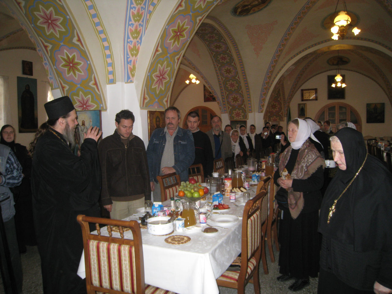 Потом матушка провела нас в трапезную и пригласила к столу. Мы помолились и уютно расселись за большим столом. Матушка села во главе стола, а сестры подали трапезу.