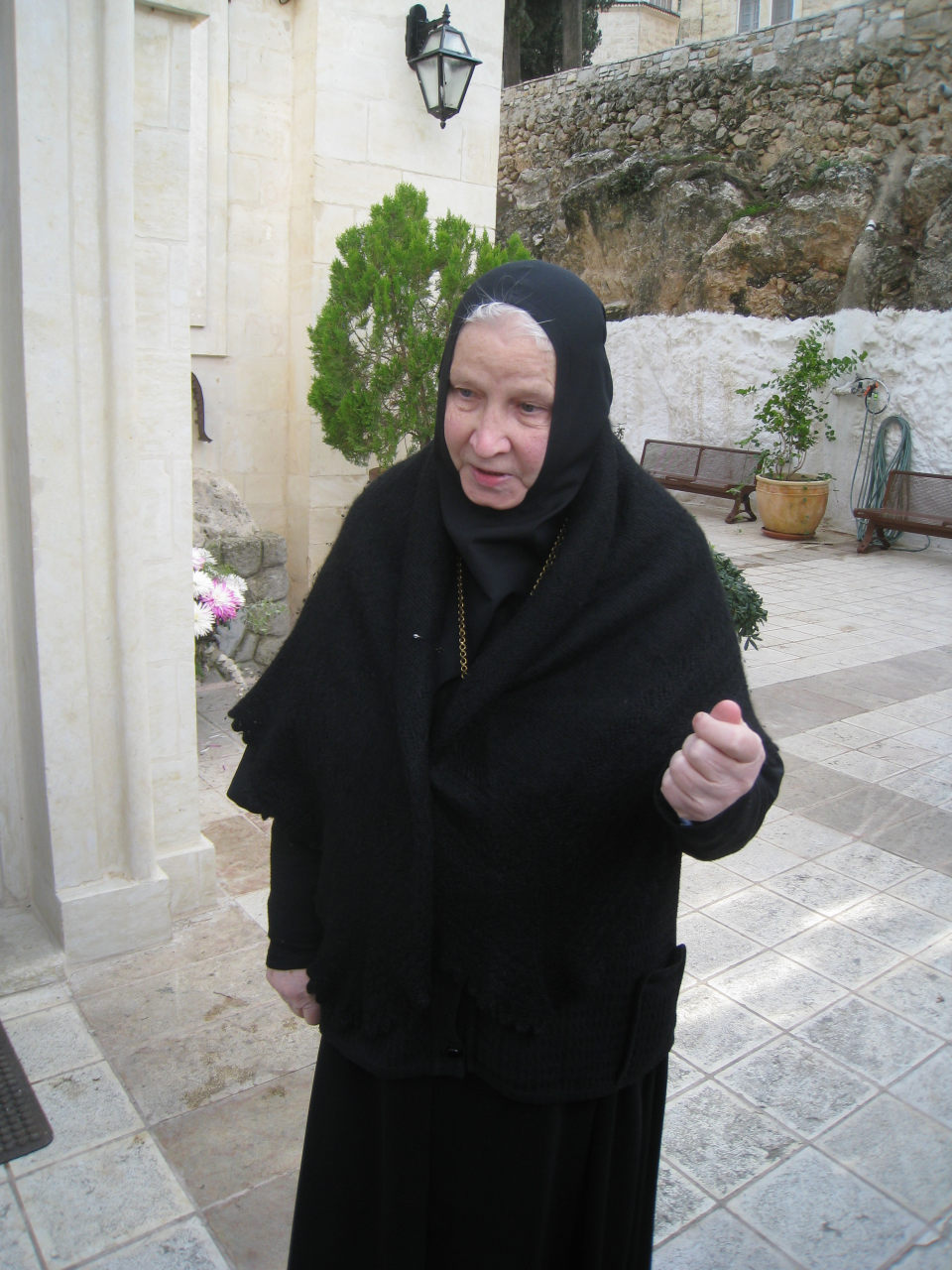 - Сейчас у нас 83 сестры. Но 16 из них трудиться в Миссии, а еще по участкам. У нас же и Хеврон, и Иерехон, и Хайфа, и Тиверия. И там везде наши сестры: по две стеры и трудницы. Да старенькие многие, болеют часто. Вот сейчас опять несколько уехали лечиться: то глаза, то спина. Вот мы тут старухи, а здоровье здоровее, крепче, чем у молодых. Вот почти каждый день Я уже сестре, которая доктор, своя монахиня, говорю - не надо по одной возить, двоих-троих собери и потом вези. Потому что надо же и машину оплачитвать. Возим в Вифлеем, потому что там есть доктор, который учился в России, по-русски говорит, уже столько лет мы с ним знакомы, и там по дешевле - и лекарства, и обслуживание, да и что-то купить.