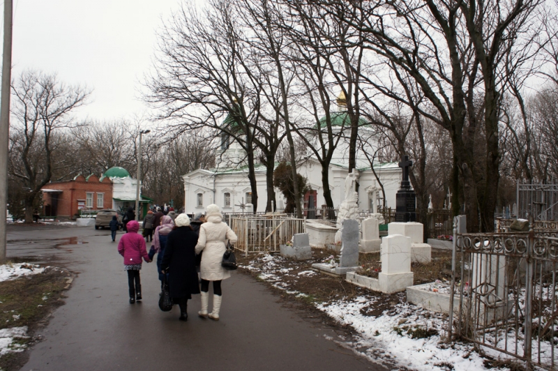 После этого группа отправилась на старое кладбище, где в 1999 году были обретены мощи старца и где находится старокладбищенский храм "Всех Святых" (Как раз неподалеку от могилы блаженного Павла. На месте могилы сейчас построена небольшая часовня). В храме паломники приложились к старинной иконе св. Целителя Пантелеимона, которая в декабре 2010 года чудесным образом продолжительное время светилась нерукотворным светом. Там же на кладбище группа посетила братскую могилу юнкеров, расстрелянных 93 года назад при взятии Таганрога большевиками.
