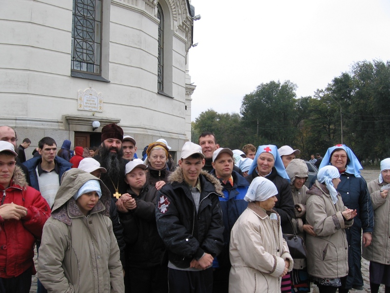 23 октября 2011 года епархиальным Отделом по взаимодействию с медицинскими учреждениями была организована поездка в Новочеркасск для пациентов психоневрологического интерната №1, над которым шефствует сестричество св. блаж. Ксении Петербургской Свято-Казанского храма г.Ростова-на-Дону. Программа поездки оказалась довольна насыщенной. Ростовские паломники посетили Вознесенский войсковой собор, а также храмы Александра Невского и Архангела Михаила. ... Из Ростова выехали рано, чтобы успеть к Литургии в Вознесенском соборе. Поскольку в настоящее время он находится на реставрации, то службы идут в нижнем храме Покрова Пресвятой Богородицы. Там их уже ждал настоятель собора игумен Филарет (Авдюшкин), который тепло встретил необычных гостей. Все 34 инвалида исповедались и причастились Святых Христовых Тайн. Батюшка в своей проповеди сказал много добрых слов паломникам, организовал для них интересную экскурсию по собору, который поразил всех приехавших своей монументальностью (третий по величине храм в России после храма Христа Спасителя в Москве и Исаакиевского собора в Санкт-Петербурге!). А на прощание - одарил конфетами.