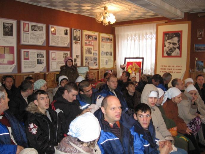 Здесь же после службы произошло неожиданное знакомство с дочерью новочеркасского поэта Владимира Калмыкова. Женщина обратила внимание на необычную группу людей и пригласила их в дом-музей своего отца, в котором как раз сейчас проходит выставка «Святая Русь». Как оказалось, поэт последние 17 лет своей жизни был прикован к постели, но при этом не падал духом и писал жизнеутверждающие стихи. Гостям из Ростова дочь поэта тоже посоветовала не отчаиваться, с удовольствием прочитала им свои стихи. И тут произошло маленькое чудо. Одна из подопечных сестричества вдруг попросила разрешения прочитать собственные стихи. - Этого никто не ожидал и не подозревал, что кто-то из пациентов интерната пишет стихи, - признались сестры. - Стихи, надо сказать, замечательные! Для нас это было неожиданное открытие. И вообще, если оценивать нашу поездку по духовным параметрам, то она получилась очень содержательной. Мы видим, как наши подопечные возрастают в вере. После Вознесенского собора группа паломников отправилась в церковь Александра Невского, где их тоже уже ждал клирик храма иерей Михаил Гапоненко. Он провёл их по храму, рассказал о его истории и святынях, а потом была трапеза. Последним пунктом паломнической поездки по святым местам столицы донского казачества стал храм Архангела Михаила.